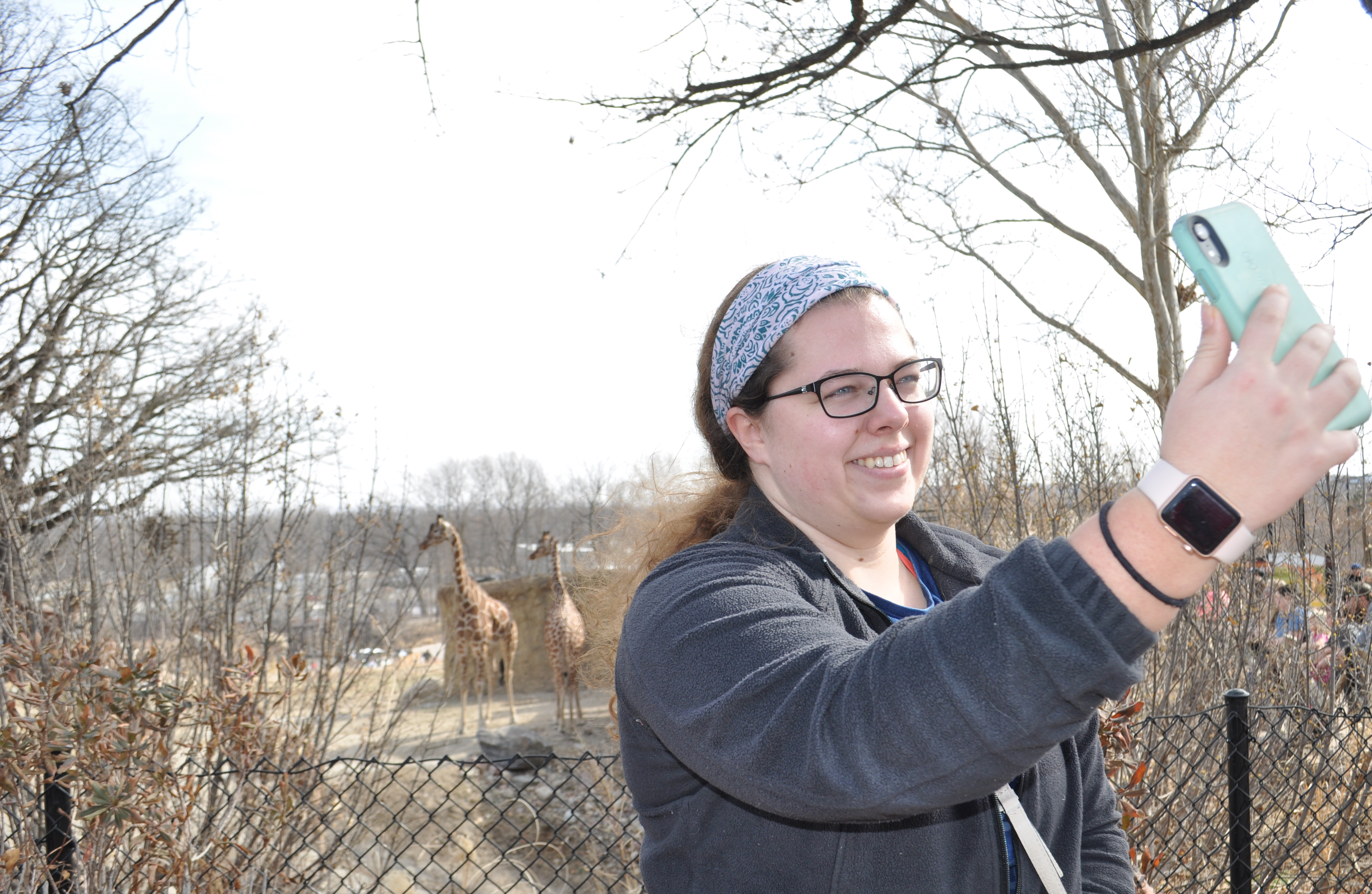 March 7, 2020 was the second busiest day of the year so far at the Omaha Henry Doorly Zoo and Aquarium. Annual visitation reaches more than 2 million each year, making the zoo Nebraska’s top tourist attraction. Zookeepers Christine and Amanda head to feed the sea lions amidst the 15,000 visitors they expected at the zoo on the first Saturday of March.Zookeeper Christine feeds a male sea lion. According to the zoo’s marketing department, “Keepers are the celebrities of the zoo!”Amanda also feeds a sea lion Saturday afternoon. The keepers are in touch with the animals, and know what is happening in their lives. “Keepers have that wow factor!” says the marketing department. Social media experiences are found all over at the zoo. Here, Miranda takes a selfie after watching the giraffes galloping. The millennial crowd visits the zoo’s Instagram site most often where the zoo features fun and creative photos with a conservation message.Raesha and Riley are avid hobbiest photographers who sometimes share their photos on the zoo’s Facebook site. According to the marketing department, the zoo’s “buying audience” —people who financially support the zoo ages 35-50 — mostly are engaging with the zoo on Facebook.Jayden, 19 months, shares a moment with a baby gorilla in the gorilla house. At the zoo, every exhibit is a viral sensation ready to happen. Fans of the sloth bear caught every one of his dramatic moves Saturday afternoon. “We have a very active base on social media, and it’s very overwhelming because everybody is paying attention to the zoo,” said Andrea Hennings, director of social media at the zoo. Maddy and Delaney Snapchat friends who they discovered were also at the zoo from social media. While the zoo is not currently active on Snapchat, staff members are monitoring and exploring its value. The zoo’s social media scheduling calendar now comes directly from input from the zookeepers. Andrea Hennings, social media manager for the Omaha Henry Doorly zoo, demonstrates the importance of the size and direction of videos for apps used on smartphones.